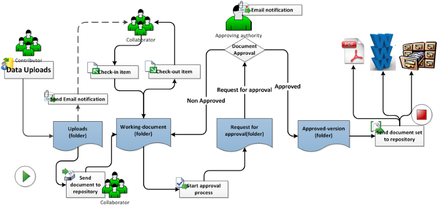 El workflow permite optimizar los procesos en que se descompone la cadena de valor de una organización mediante la coordinación de actividades entre diferentes áreas o departamentos, entre máquinas o entre trabajadores. Normalmente el workflow es representado mediante un diagrama que conecta los distintos procesos que intervienen.